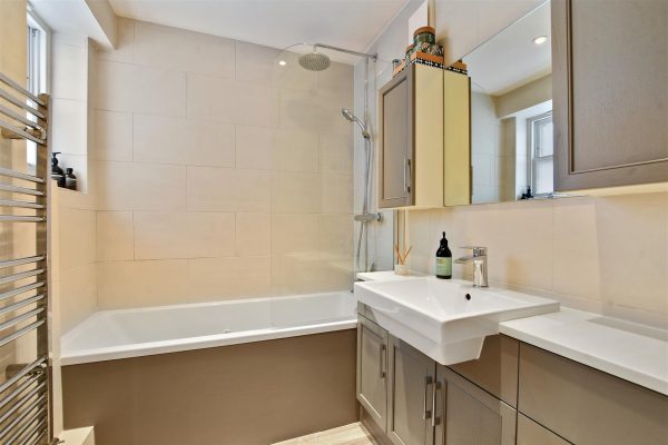 The flat is offered in excellent condition and features a private patio garden, master bedroom with built in wardrobes and period style fireplace whilst the attractive reception room also features a period fireplace and built in storage. The flat also benefits from timber double glazed sash windows throughout.