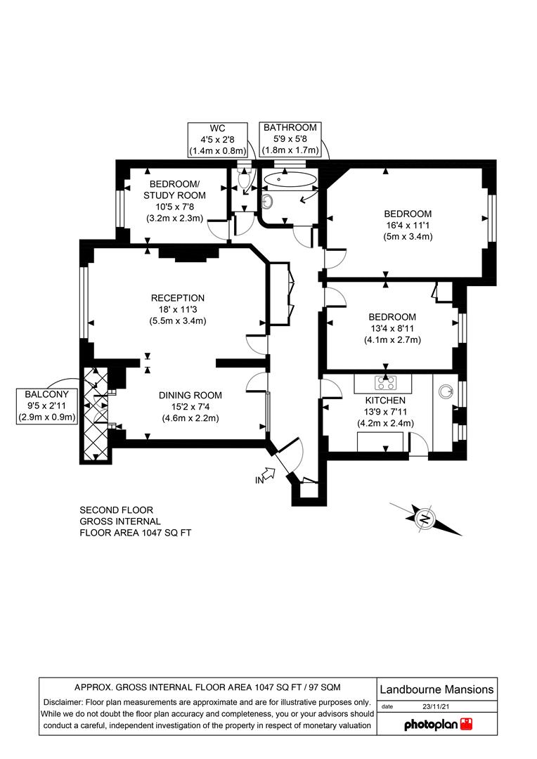 A 1047 sq.ft second floor THREE bedroom apartment situated within the sought after Holly Lodge Estate. The apartment comprises a double length reception room with French doors leading to a southerly facing balcony with far reaching views, three bedrooms (two doubles, one single), family bathroom and a separate WC.