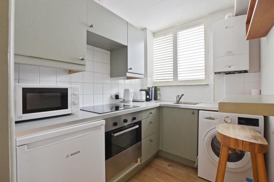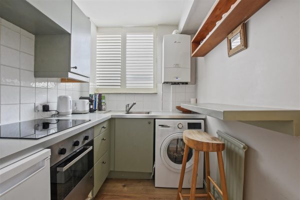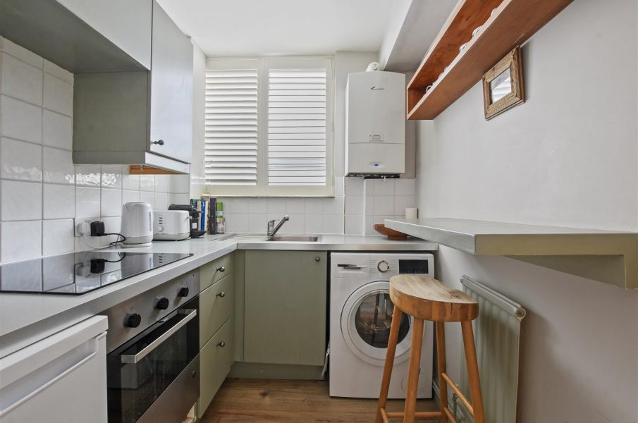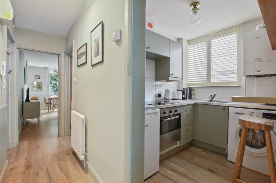 The flat offers a reception room, double bedroom, with small southerly facing REAR BALCONY, fitted kitchen, bathroom and an OFF STREET PARKING SPACE.